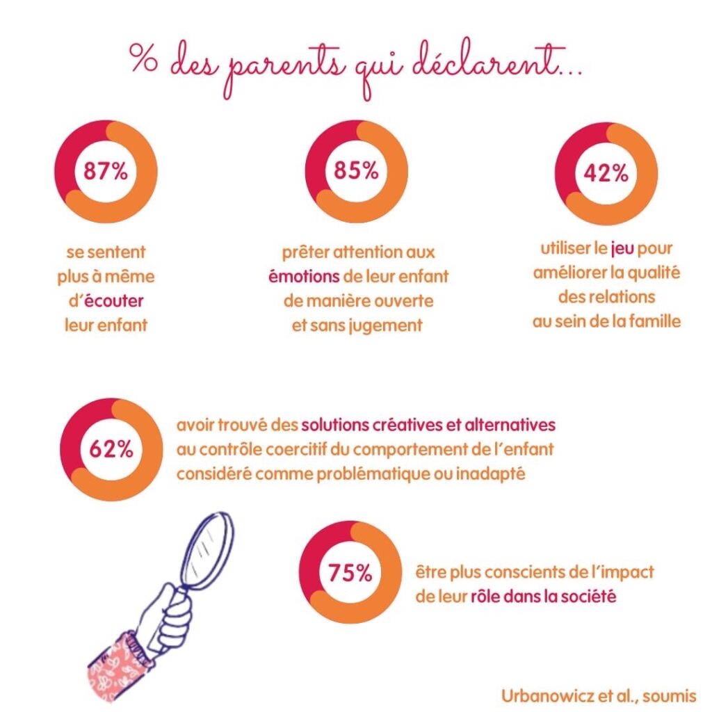 - L’écoute et le soutien : apprentissage et expérimentation des techniques d’écoute. Les bienfaits sur la relation parent/enfant.